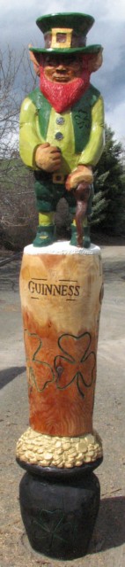 This totem has a pot of gold, Guinness bear and leprechaun. Have your name carved down the side. Click picture to see each figures close-up. For a Limited Time Only! Free Shipping on this item! |