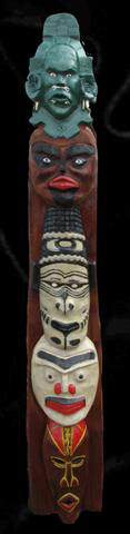 This 7' totem is truly a unique pole. There are masks on this pole from all over the world. Click picture to see each mask's close-up. For a Limited Time Only! Free Shipping on this item! |